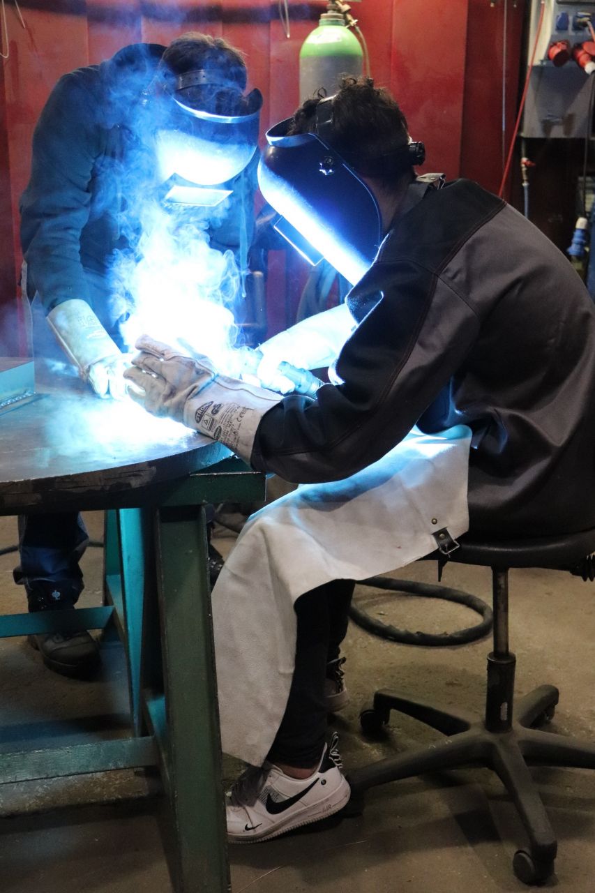 Nach einer ausführlichen Führung durch die Produktion, während der der Produktionsprozess eines einzelnen Produktes verfolgt werden konnte, hatten die Schüler noch die Möglichkeit Ihre Geschicklichkeit beim Gewindeschneiden und beim Schweißen unter Beweis zu stellen.