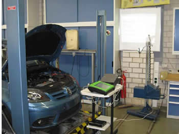 Die jeweiligen Problemstellungen werden mit betrieblichen Aufträgen simuliert und an den schuleigenen Fahrzeugen: